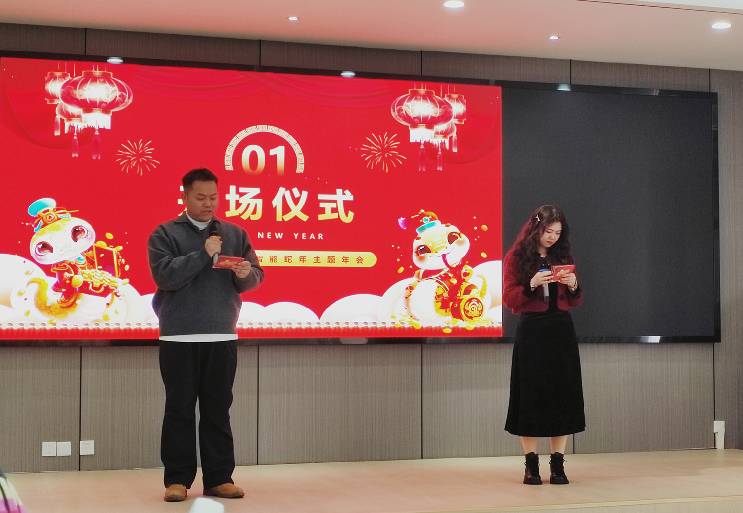 主持人盛装登台:“亲爱的伙伴们,钛极智能年会此刻起航,共赴精彩!” 瞬间点燃热情。